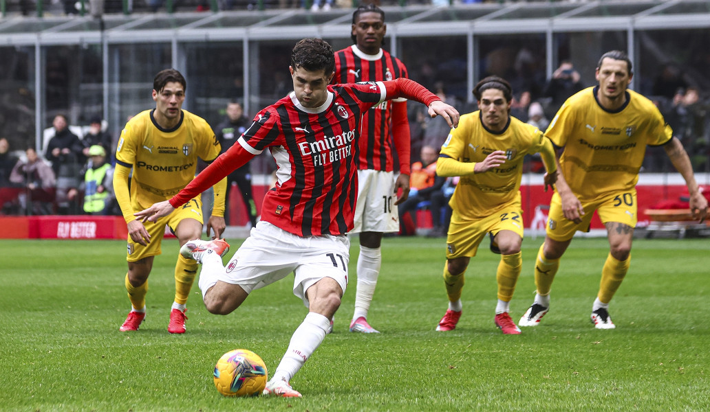 Гол лучшего нынешнего бомбардира «Милана» Кристиана Пулишича с пенальти помог обыграть «Парму» в начале года – 3:2. Фото: пресс-служба ФК «Милан»