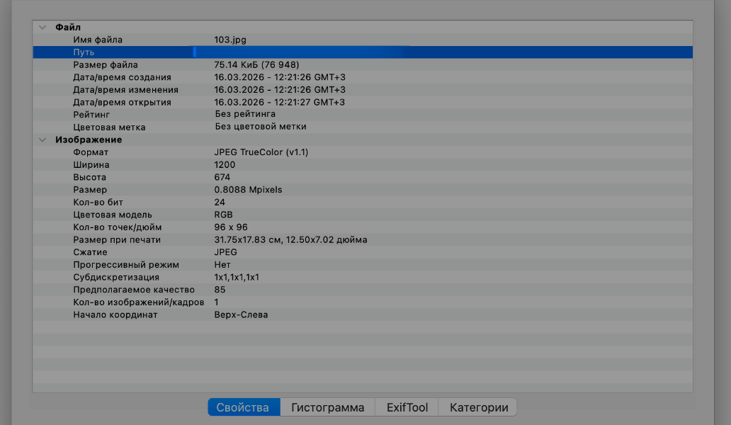 Если вы можете сохранить фото на свое устройство, то, скорее всего, у вас получится проверить его изображение на смартфоне или компьютере. Дело в том, что у настоящих фотографий можно увидеть сохраненные метаданные – дату съемки, параметры экспозиции и даже модель камеры, на которую сделан снимок. А вот у сгенерированных картинок наверняка не будет «вшитых» метаданных. Или они могут представлять собой бессвязный набор слов.